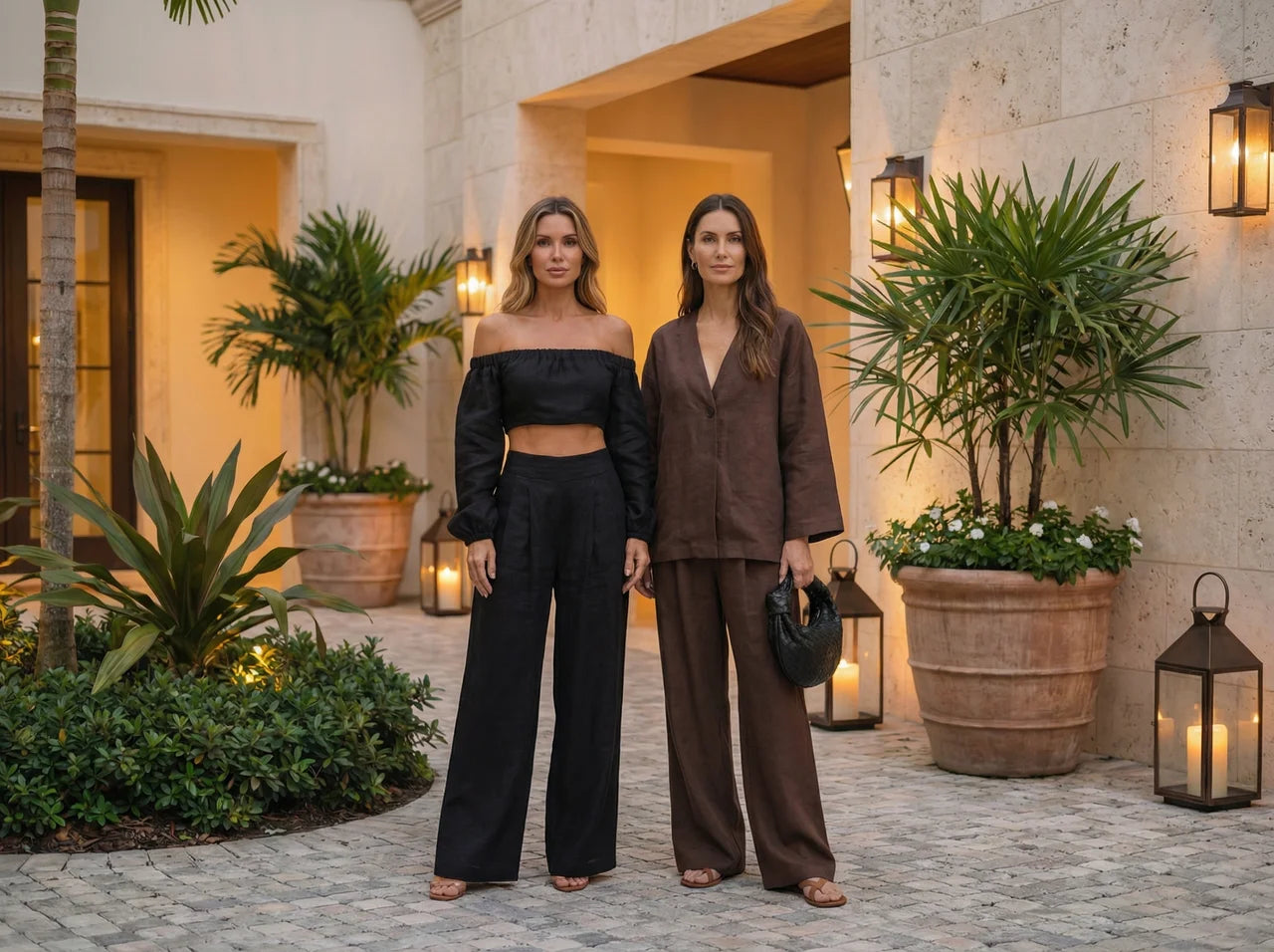 Elavine – Soft linen finish – Wide-leg co-ord set